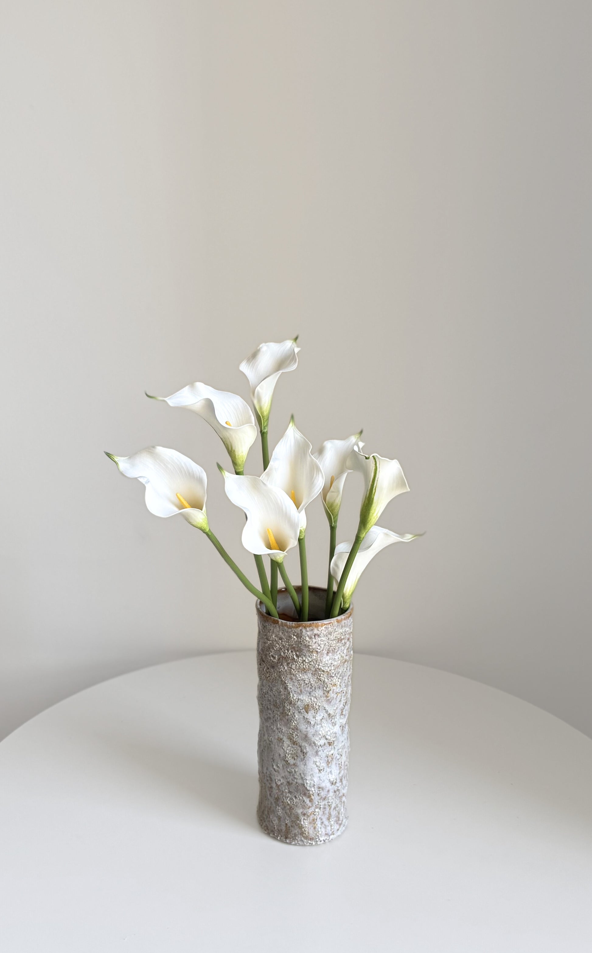 Our flowers are versatile and you may opt to set them up as seen in our website photo or create your own unique arrangement. The stems and leaves can be gently bent and shaped to achieve the desired look.
