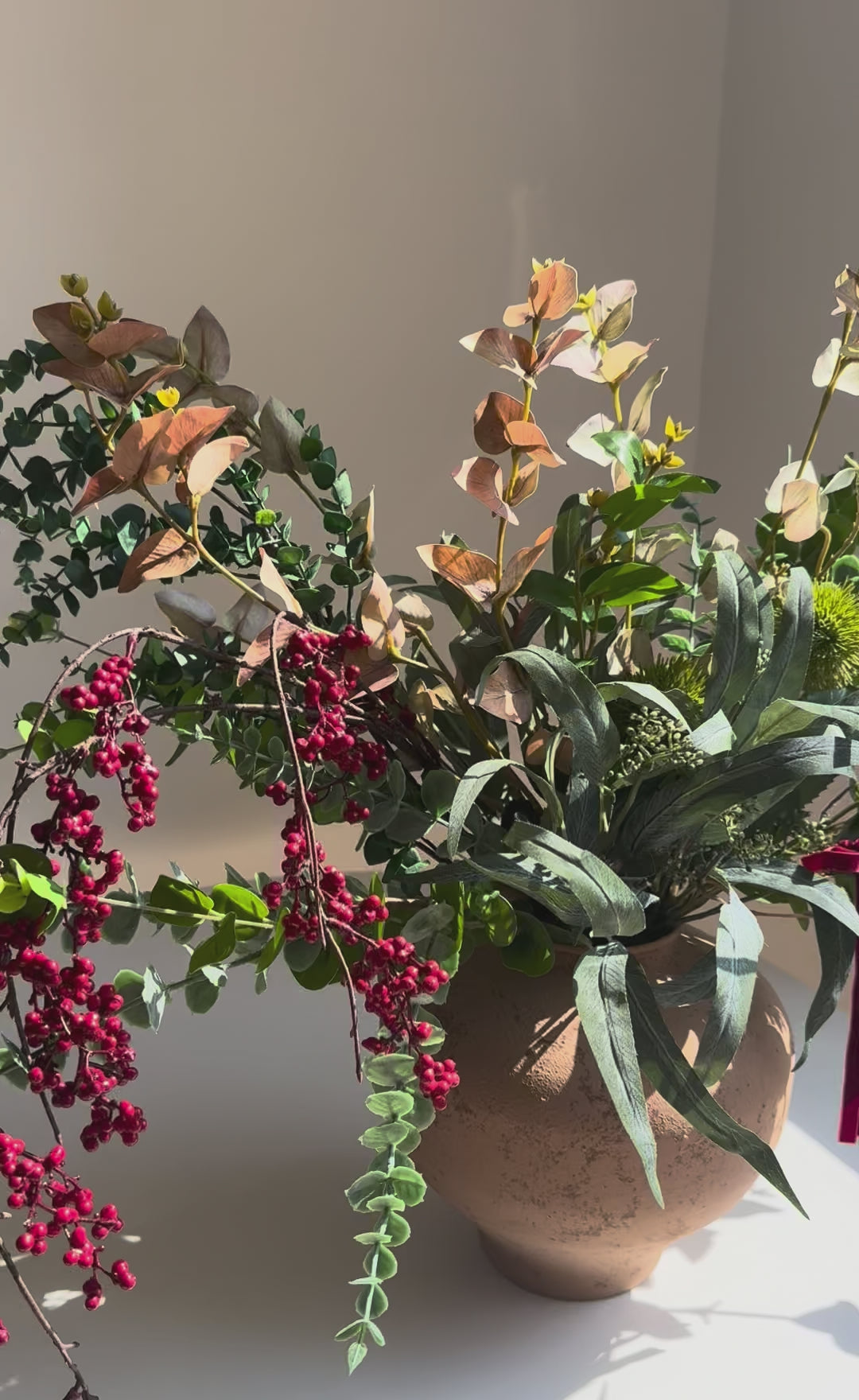 Our flowers are versatile and you may opt to set them up as seen in our website photo or create your own unique arrangement. The stems and leaves can be gently bent and shaped to achieve the desired look.