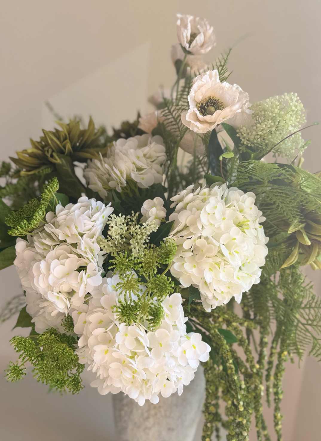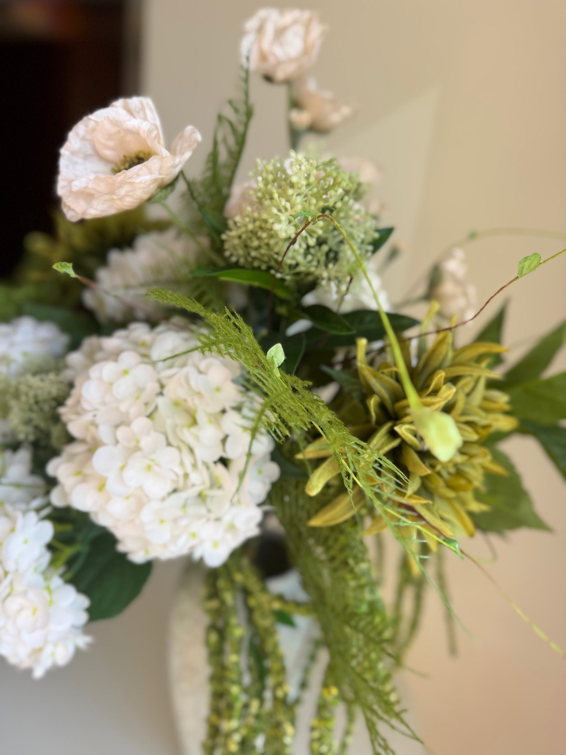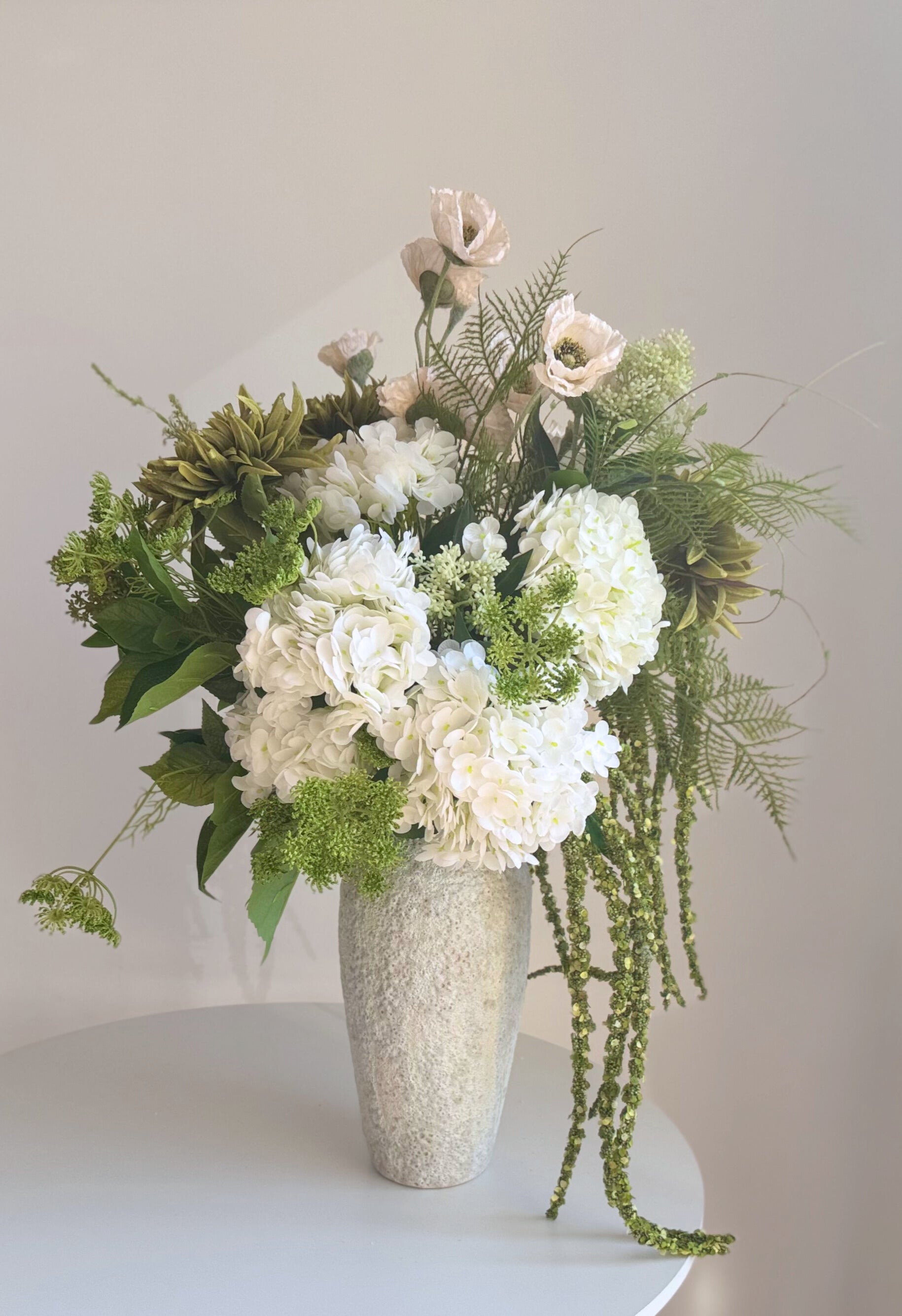 The highest point of this bouquet measures approximately 60 cm, but all stems can be easily bent and adjusted to achieve the desired height and shape for any arrangement.